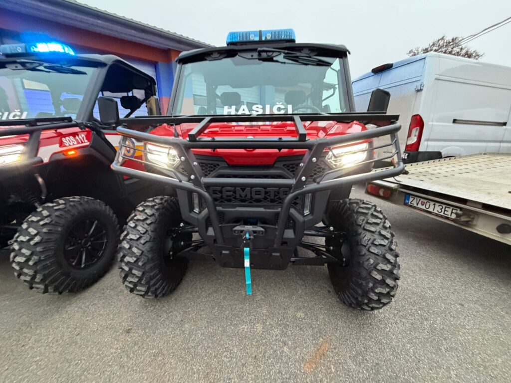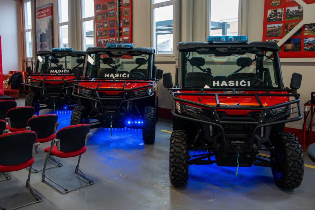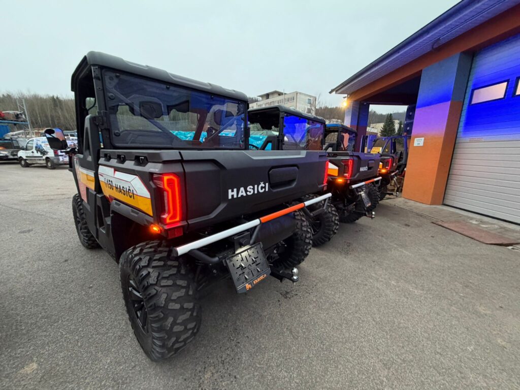 Hasičské UTV je vybaveno speciální výstrojí zvyšující bezpečnost, funkčnost a komfort posádky: