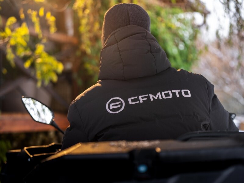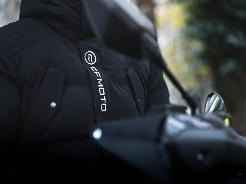 - Decentní vyšívané logo CFMOTO na přední straně v oblasti zapínání