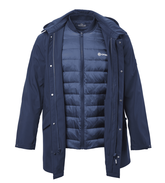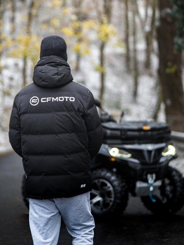 Set nepromokavého pánského kabátu a péřové bundy z oficiální kolekce CFMOTO. Možno nosit samostatně nebo dohromady, vhodné na čtyřkolku i pro volný čas.
