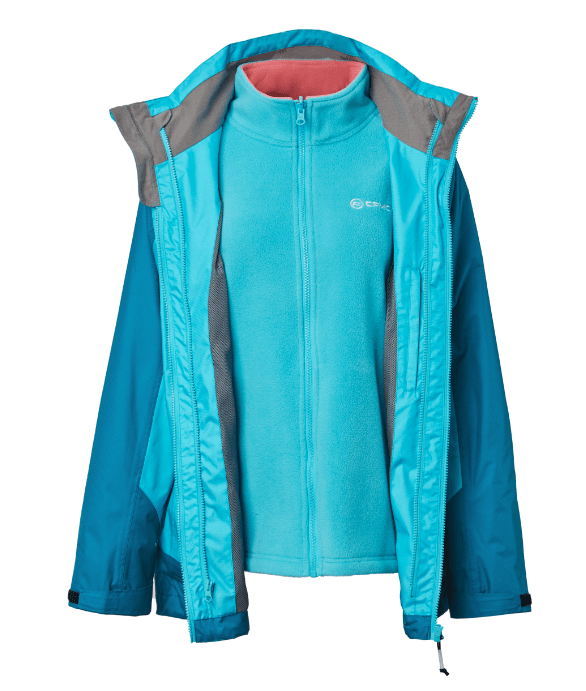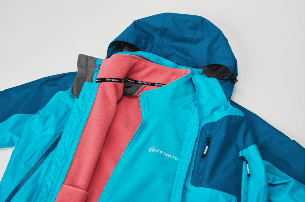 Set nepromokavé dámské bundy a fleecové mikiny z oficiální kolekce CFMOTO. Možno nosit samostatně nebo dohromady, vhodné na čtyřkolku i pro volný čas.