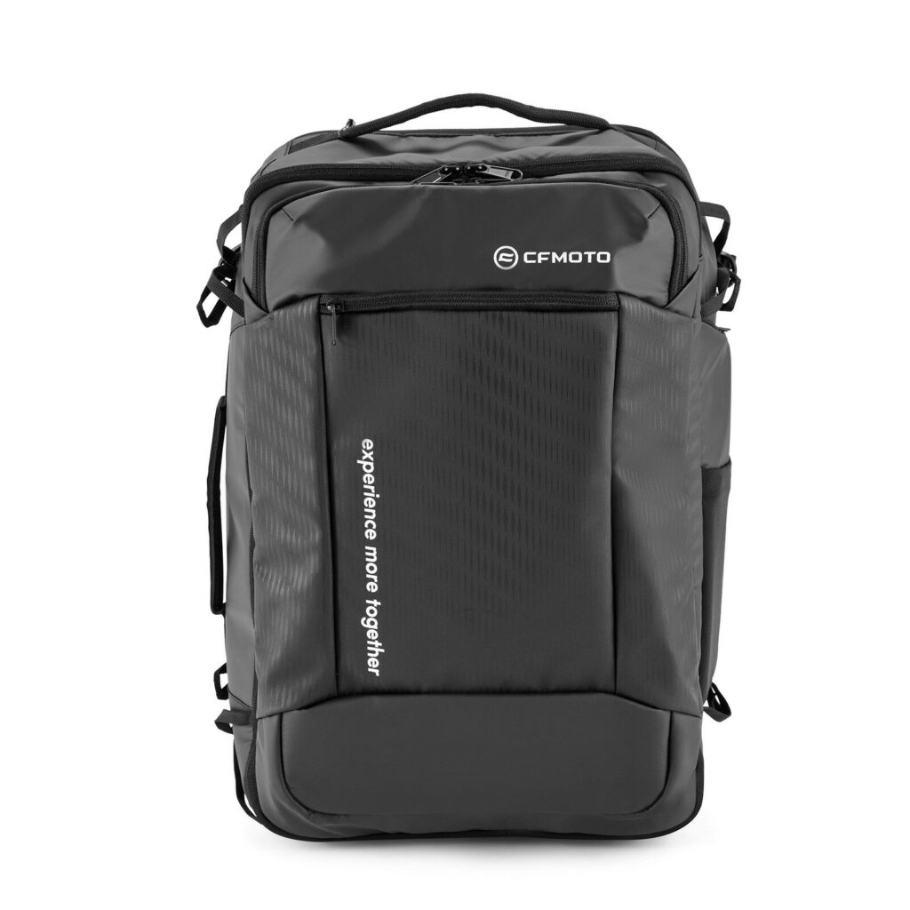 Objemný batoh CFMOTO vhodný jako business zavazadlo – možnost nošení na zádech, přes rameno nebo v ruce, jedoduše jej také navléknete na výsuvné madlo většího cestovního kufru. Ideální kabinové zavazadlo do letadla.