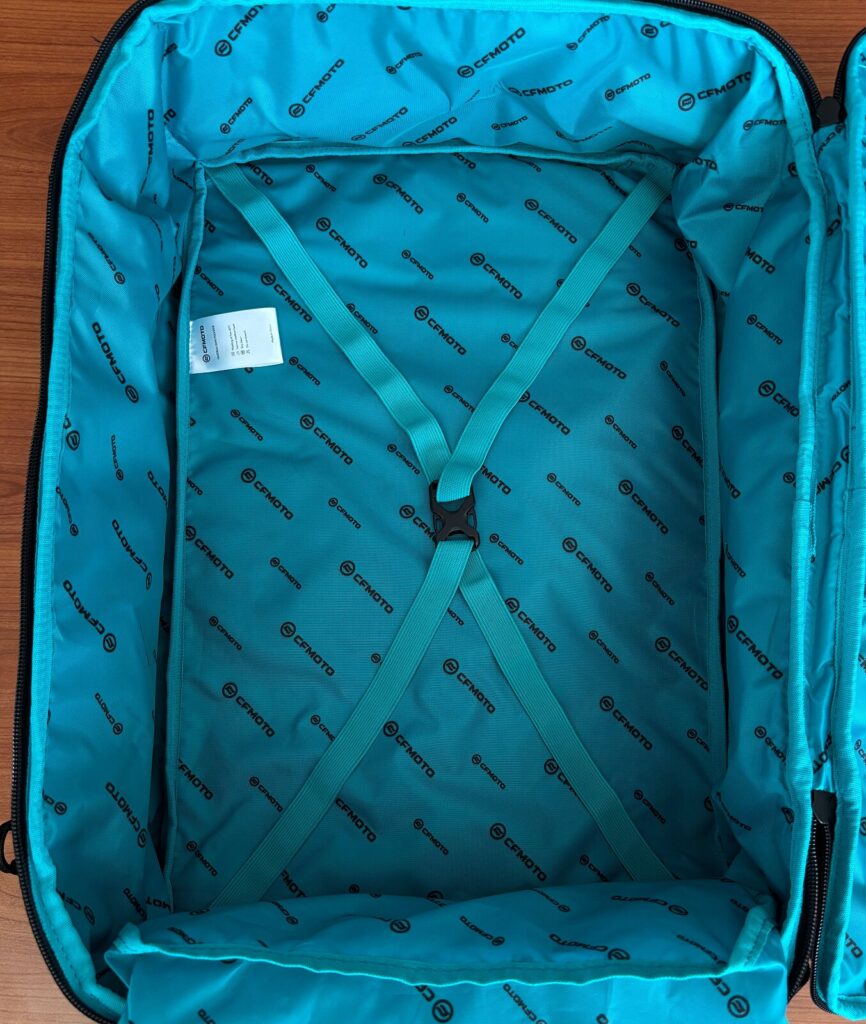 - Hlavní prostor s popruhy pro fixaci oblečení