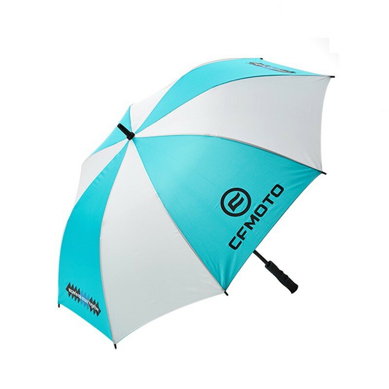 Stylový skládací deštník CFMOTO s dlouhou rukojetí.