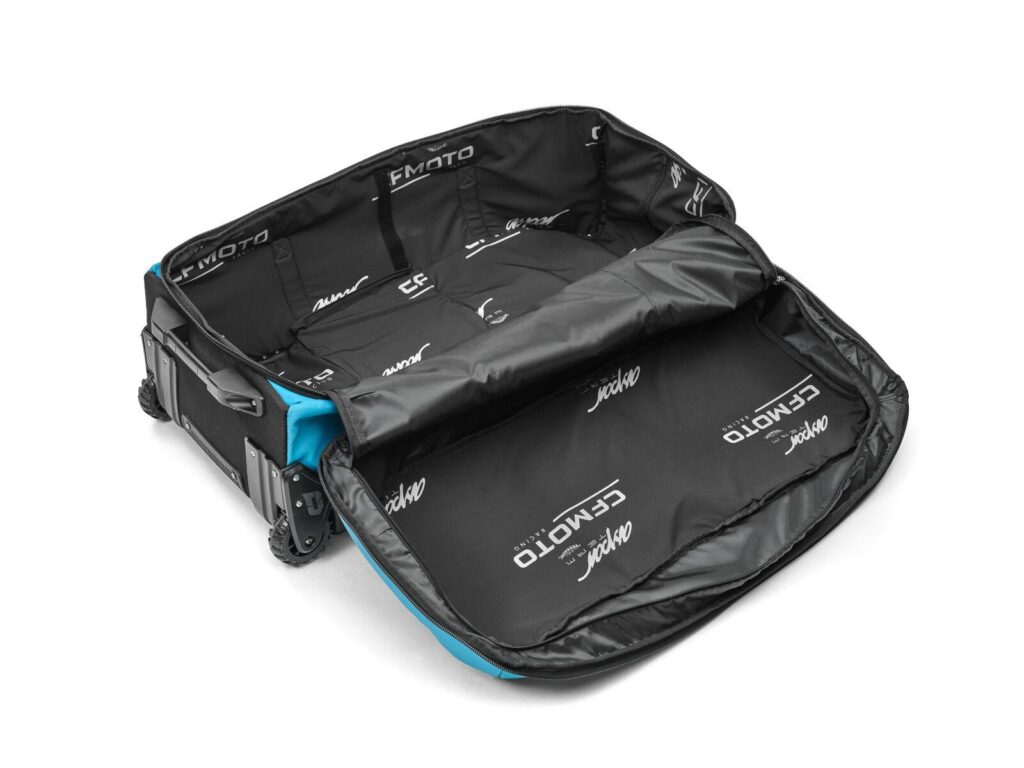 Praktická cestovní taška na kolečkách z oficiální kolekce závodní stáje CFMOTO Racing Aspar Team, mistra světa šampionátu MotoGP 2024 ve třídě Moto3. Ideální pro přepravu kompletního motorkářského oblečení a vybavení.