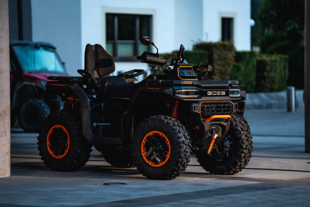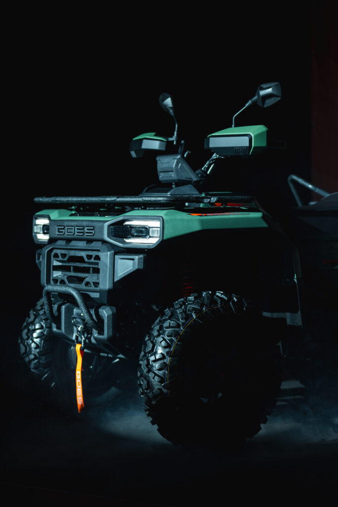 O designu můžeme mluvit asi společně pro obě kubatury. V základu jsou si totiž tyhle čtyřkolky zatraceně podobné a hned při prvním pohledu mě napadají dvě slova – offroad a práce. Nabízí rovnou přední masku, které vévodí logo GOES uprostřed a LED světlomety obdélníkového tvaru se zaoblenými rohy. Podobný design najdete i na zadní straně stroje. Světla tu rozhodně nejsou jen pro parádu, nesou na sobě značku OSRAM a jejich účinnost patří k tomu nejlepšímu, co mezi čtyřkolkami můžete mít. GOESy se prezentují primárně jako pracovní stroje a tomu je samozřejmě uzpůsobený i design. Přední maska je rovná a narušuje jí jen naviják, který je na obou verzích v sérii. Kola jsou hodně vepředu, což má blahodárný vliv na nájezdový úhel, který je 80%.