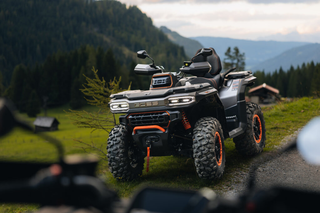 Samozřejmě, že litr je litr a každého zajímá nejvíc, proto mě trochu mrzí, že stranou zůstal půllitr, který bude možná spoustu lidí zajímat mnohem víc. Je lehčí, je úspornější a je dostupný v krátké i dlouhé verzi. Když stojíte dál, je design hodně podobný litru. Zblízka už je samozřejmě vidět subtilnější konstrukce menšího stroje. Ten má ve svých útrobách osvědčený jednoválec poslední generace, který prošel řádnou modernizací, a je spojený s variátorem od CFMOTO. Stejně jako litr je i pětistovka uzpůsobena hlavně práci. Výkon pětistovky je rozhodně působivý, 40 koní jen tak neutaháte.