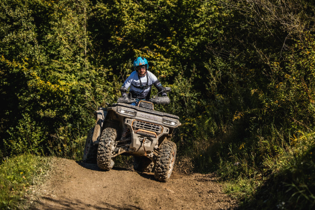 Jiná písnička je to po přepnutí na sport. V tu chvíli je z motoru divočák, který reaguje na sebemenší stisknutí plynové rukojeti okamžitým vytočením a nástupem výkonu. Když to čekáte, je to náramná zábava, se čtyřkolkou můžete vyjíždět ze zatáček bokem, vyskakovat přes překážky a celkově blbnout co hrdlo ráčí, ale chce to už trochu rozumu a zkušeností. Pomůže vám samozřejmě i posilovač řízení, který si můžete nastavit do několika režimů a zároveň se sám adaptuje vaší rychlosti jízdy. Za celou dobu testování se mi nestalo, že by posilovač zbytečně ztuhl, nebo šel naopak moc zlehka.