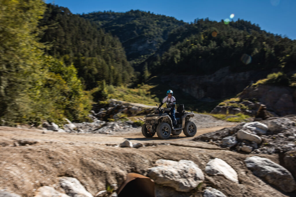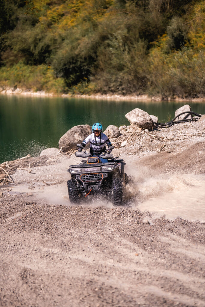 Zajímavostí jsou boční kryty na obou stranách čtyřkolky. Ty kompletně zakrývají motor a variátor. Na první pohled to je dost nepraktické kvůli servisu. Kryty lze ale snadno sundat rychloupínacím systémem a pod nimi se skrývá přístup ke všem kontrolkám a servisu obecně, motor je navíc víceméně čistý. Na vlastní kůži jsem si to vyzkoušel, když jsem to trochu přehnal s broděním a bylo třeba vypustit vodu z variátoru. Stačilo sundat kryt, povolit zátku a za pár minut už jsem byl zase v sedle.  Tohle se nám moc líbí!
