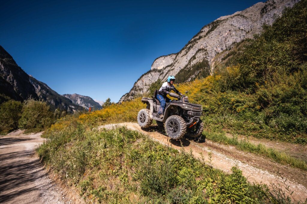 Terrox 1000 můžete dostat v základní verzi, která je obutá na luxusních litých kolech, má naviják i veškerou další výbavu. Připlatit si ale můžete ještě za variantu Limited. Ta trochu odbočuje od práce a má nazutá kola s bedlocky, která drží pneumatiky na místě při extrémnější jízdě. Další nepřehlédnutelnou výbavou jsou plynokapalinové tlumiče, které fungují zejména při ostřejší jízdě a podrží vás i když se k mašině budete chovat hodně hrubě. Navíc jsou tu ještě vyhřívané rukojeti a sedlo, což jsme v horkém dni v Alpách po Kaprunem úplně neocenili… Verzi Limited navíc poznáte podle stříbrné masky mezi světly, která vypadá fakt luxusně.